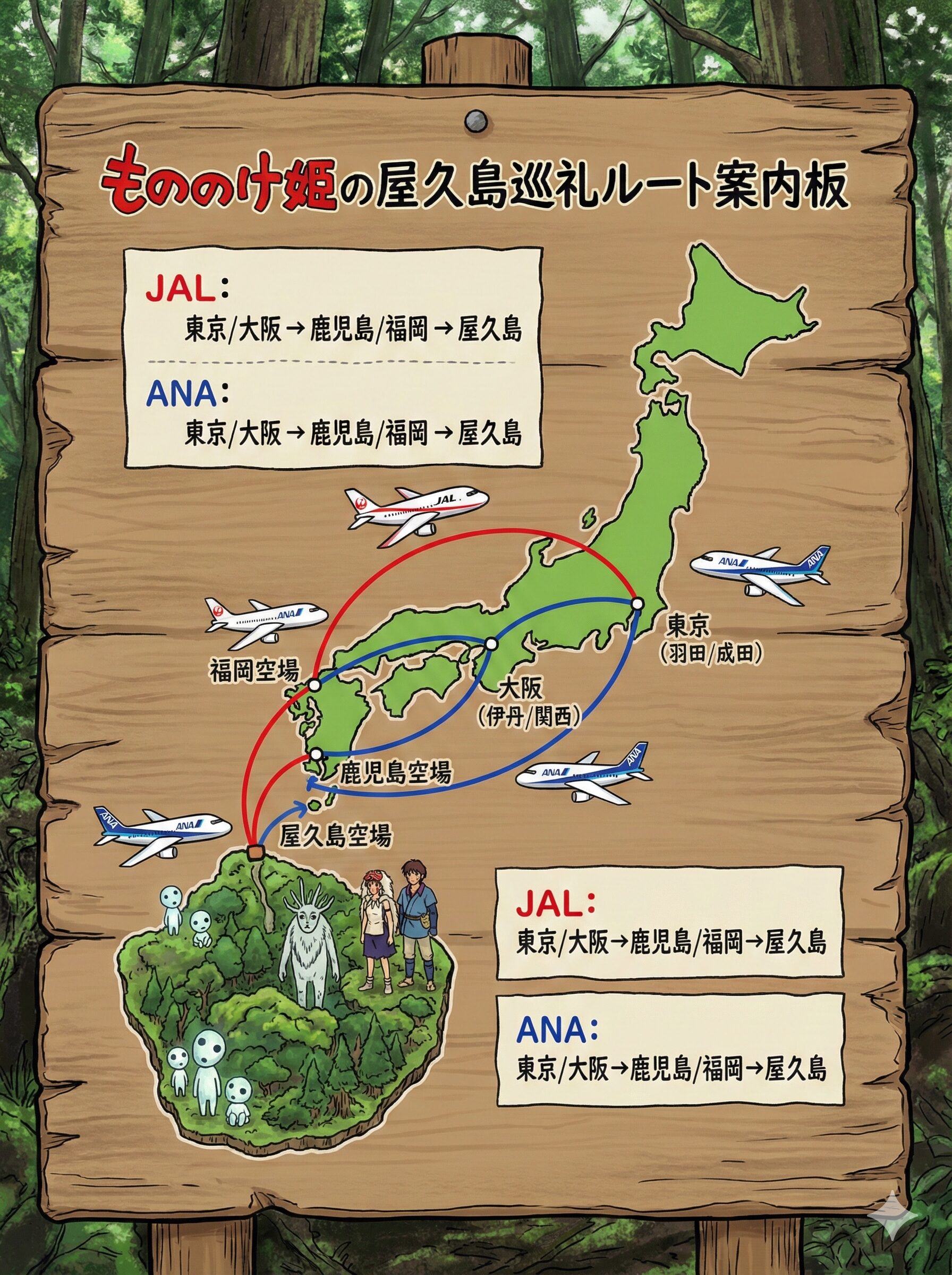 記事の結論: 『もののけ姫』の聖地・屋久島巡礼は、国内旅行でありながら高度なマイル戦略が必須です。JAL・ANAの国内線特典航空券の乗り継ぎロジックを理解し、準備を徹底すれば、費用対効果の高い「デトックスの旅」が実現します。